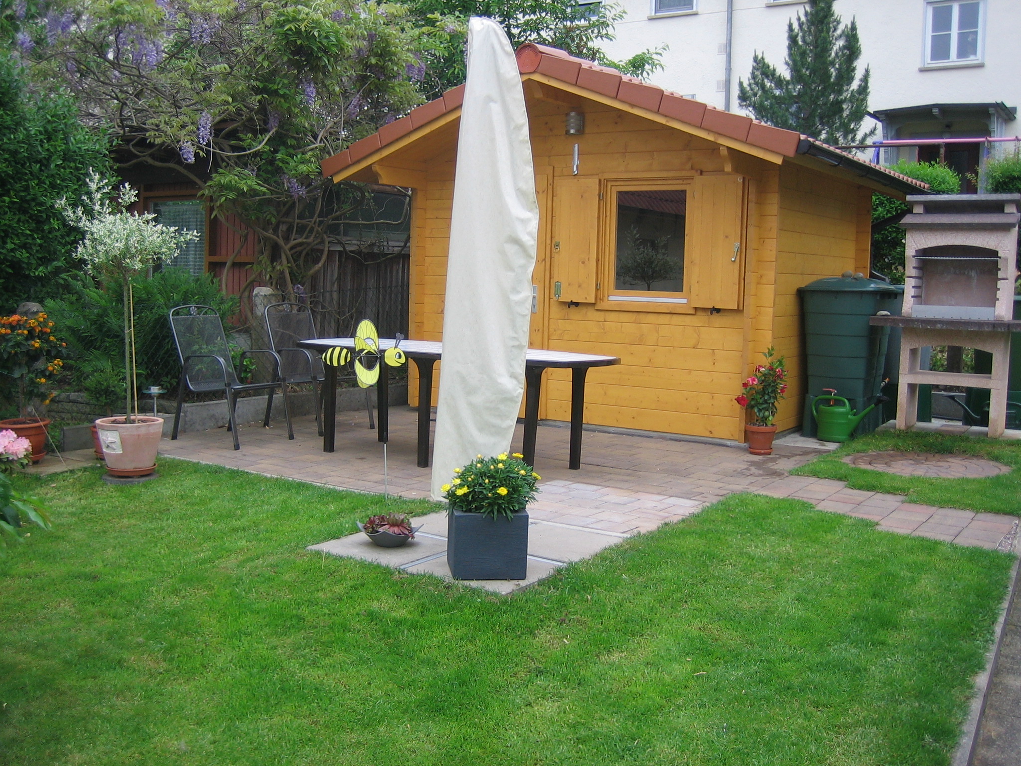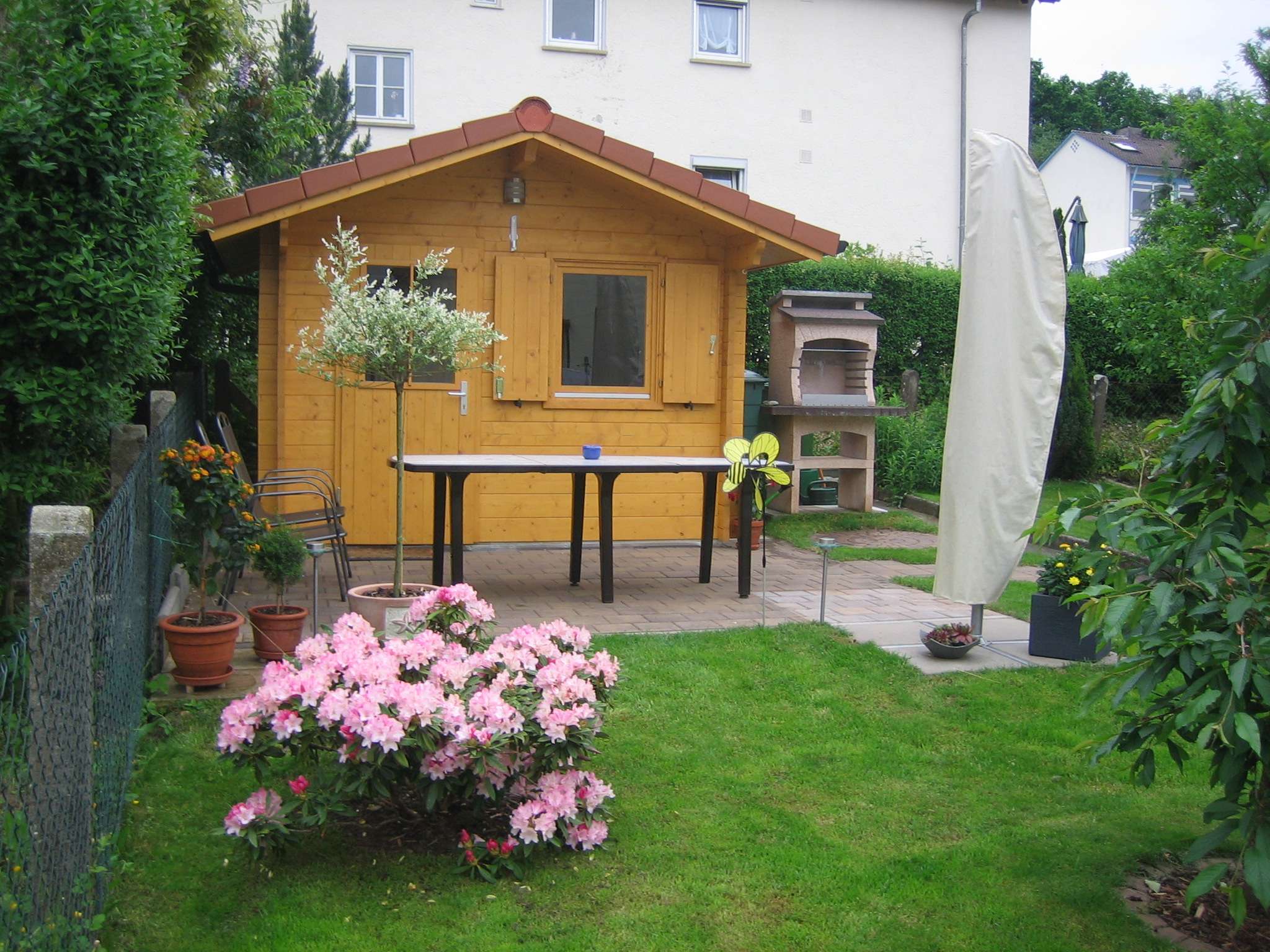 In unserem kleinen, gemütlichen Garten können sie sich entspannen, und wer möchte darf auch gerne den Kamingrill benutzen.